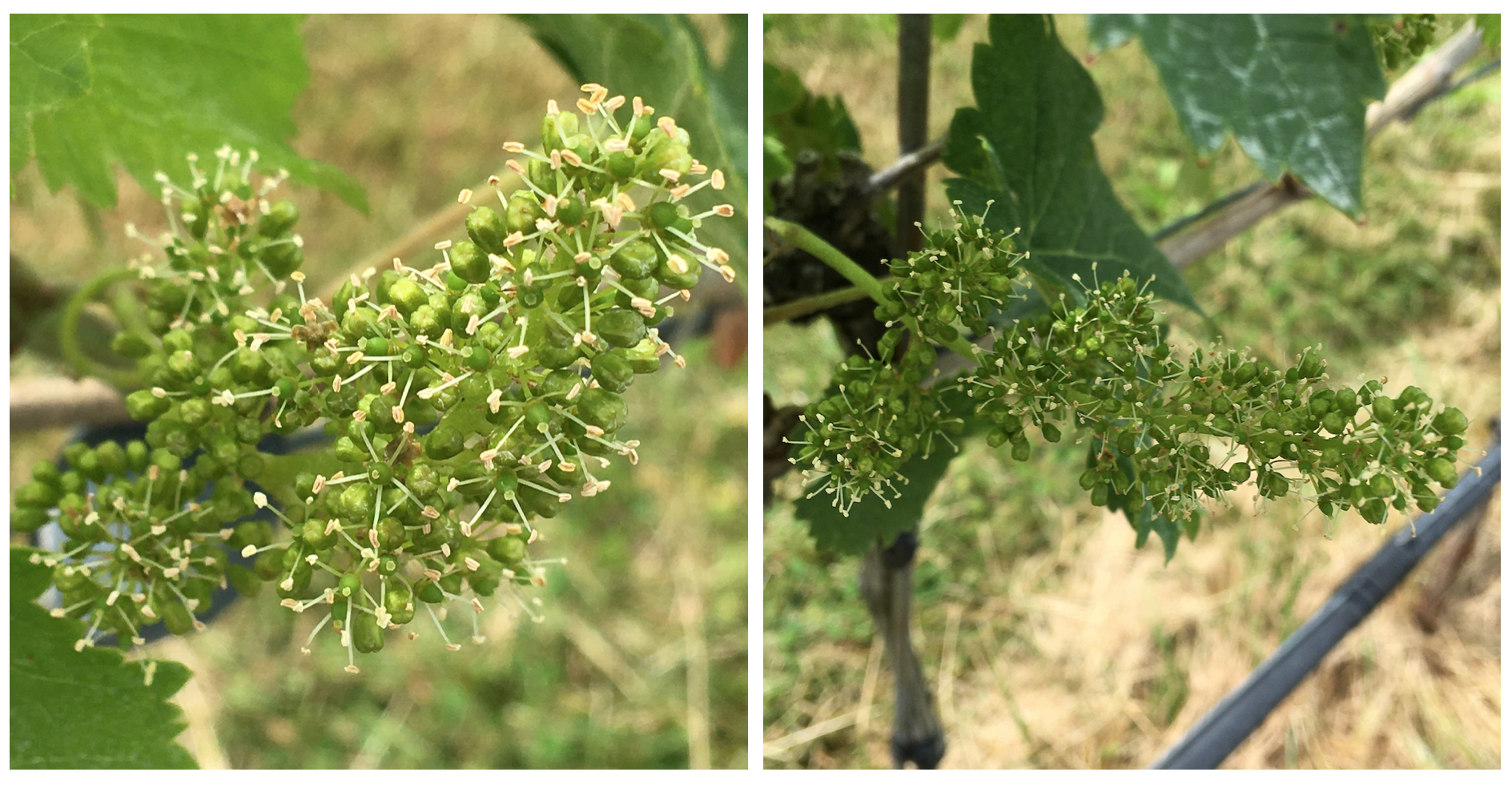 The above dates for bloom for the various varieties are approximate. For example, my friend and I were shoot tucking and shoot positioning the Cabernet Sauvignon on Monday, June 20th and did not see any inflorescence in bloom, but the next day on June 21, when I went to check the Cabernet Sauvignon, it was about 40% flowering!